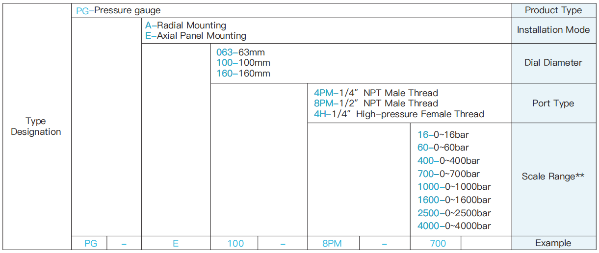 1. A variety of pressure gauge ranges are available.