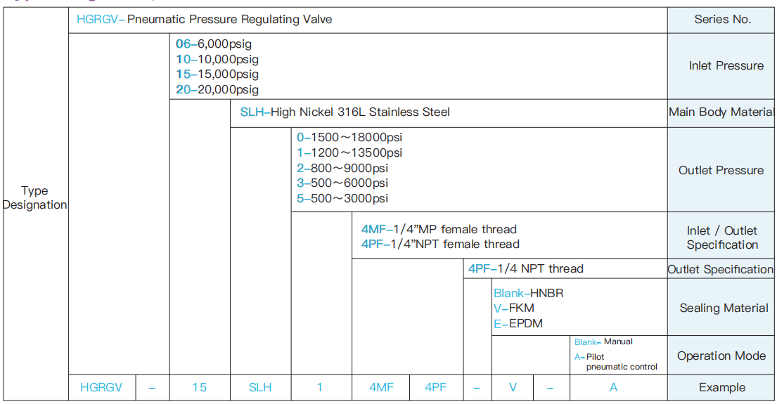 2. Outlet pressure range: 1200 to 13500psig